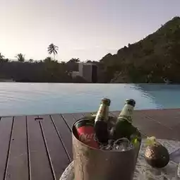Here, there is an infinity pool and a rooftop bar, which offers poolside services and a 180-degree view of both the mountains and the sea. You can swim and enjoy the view, and sip a relaxing drink in the evening. You can also see the sunset.