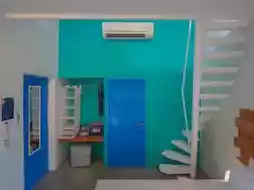 A Santorini-style accommodation, definitely cute and affordable. For those who want to travel on a budget, there is a swimming pool in the middle of the accommodation. You can walk to the sea. There are rooms for 2 people and families.