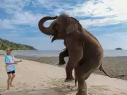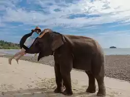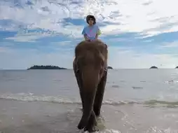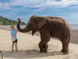 On this trip, we took photos with them at the sea.. We took photos with Chok. He is so cute and cuddly. Sometimes he hugs us with his trunk, sometimes he poses with us. He is so smart. Anyone who visits Koh Chang and wants to visit him can come to the elephant camp. There are many activities to do. Come visit him often so he won't be lonely. ⛱️ Missing Koh Chang... Missing Kai Bae Mee Chai Elephant Camp