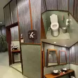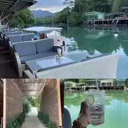 The atmosphere is very nice by the water. The restaurant does not have air conditioning. But the design is airy and spacious. There are many types of seats. Inside, outside is by the water. You can see 2 views, both the canal and the sea. Good service, polite, clean shop and bathroom.