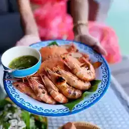 🧡 #Grilled seafood The set includes shrimp, squid, and crab, grilled just right, not dry. The seafood sauce is medium-flavored (not too spicy).