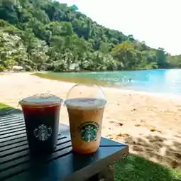 There is also a Starbucks cafe on the beach. It is a great way to drink Starbucks coffee with a beautiful view.