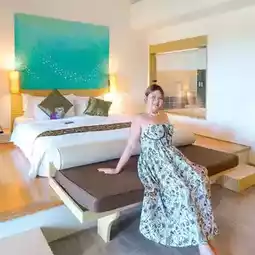 Fern stayed in the Deluxe Ocean View room, a large 52 sq.m. room with a balcony that opens out to see the sea view. The room has a king-sized bed, a bathtub, and a separate shower room.