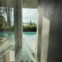 On this trip to Koh Chang, we chose to stay at Sea View, where the accommodation buildings are spread out on high ground, all the way down to the beach. This means that there must be a cable car to transport people between the points. Sometimes, we also have to use the hotel's golf cart service, which is like riding a roller coaster because the car has to accelerate to enter the steep curves. It's quite exciting. Therefore, traveling between points is a bit difficult. When we got here, we gave it a full ten points. It was really worth the trip. 😍😍 #WinterSeasideTravel
