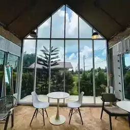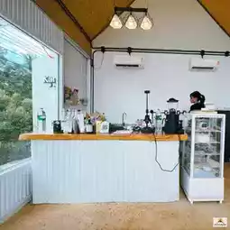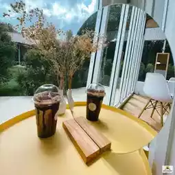 Koh Chang, turn left, there is also a cafe in a minimalist style, controlled by a comfortable white tone, located in the middle of a garden, nestled in nature. It is so prominent that you have to stop by to eat. They sell both drinks and cakes. When visiting Koh Chang, turn left and don't miss stopping by.