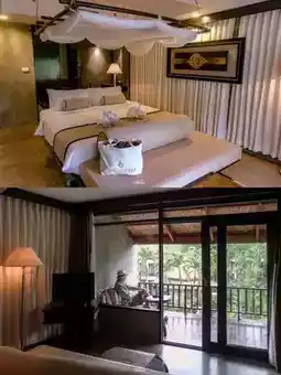 There are 3 types of rooms in total: Deluxe Villa and Grand Villa. The room we chose to stay in today is the Deluxe Room type, which is located next to the resort's central swimming pool. There is a balcony for you to sit and relax, taking in the view of the swimming pool and the lush green trees. What I really like is that there are many beautiful photo spots here, whether in the room, lobby, swimming pool or by the sea, there are plenty of beautiful photo spots.