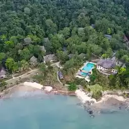 A very private resort, like coming to a secret island. This is a large resort with spacious rooms and complete facilities. The atmosphere is very good. There is a private beach here, quiet, beautiful sea, swimming pool with sea view 10/10. Plus, there are boat trips and snorkeling activities. Let me tell you that the water is very clear, the sand is very white. The accommodation also has kayaking activities to watch the beautiful sunset. Let me tell you that this is a very beautiful place and still maintains nature. When you come to Koh Chang, don't forget to turn left. 😊💜