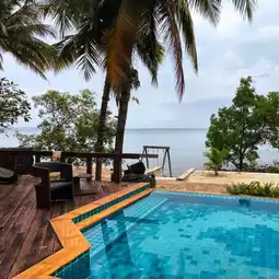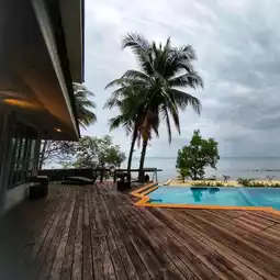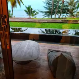 Thara Resort Koh Chang is a beachfront accommodation with a beautiful view and a great atmosphere. The rooms are spacious. There is a sofa to sit on in the room. The rooms have a sea view and are clean. There is a swimming pool to play in. There is a beach and sea water for the kids to run around. The staff is good and polite. It was a very memorable trip.