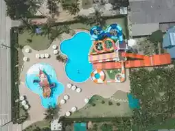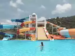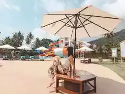 There is also a large water area for guests. If you want to play in the water park, just cross the road and you can go swimming. The resort also has a restaurant and a bar by the sea.