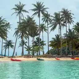 #ThaiTravel 🏝️ Koh Ngam, Trat Province, a small island that is a hidden gem of Mu Ko Chang National Park. If you come to visit # Koh Chang, turn left and have some time, I would like to recommend taking a boat or kayak to visit Koh Ngam. It is very worthwhile. It is a small and quiet island with a row of beautiful coconut trees. There is a sandbar between the two islands. It is uniquely beautiful. Most importantly, the water is clear, the sand is white, and it is very quiet. There are no resorts or shops. There is only nature. It feels like you have your own private island.
