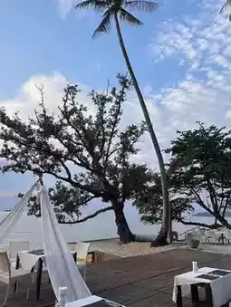 There is a beach massage shop where you can get a massage while looking at the sea,