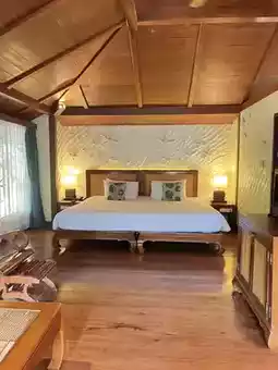 The rooms are available in both standard and sea views. However, if you bring your pet, you will have to book only the Cabana room with a garden view, which is very large. The shower area is also very good. Large dogs can live comfortably. We found the largest Siberian Husky, which was probably 50-60 kg. It still had space to walk around in the room, which was quite okay.