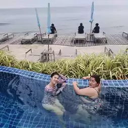 Score 4.5 out of 5. The front of the accommodation is a rock. If you walk to play in the water on the sand, you have to walk a bit further. Overall, the food is delicious, the accommodation is clean, the atmosphere is good.