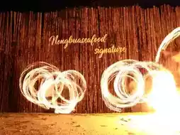 🏖️Nong Bua Seafood restaurant has delicious food, a variety of menus, affordable prices, and a pavilion where you can sit and watch the fire twirling show up close. The atmosphere is great! 🌋