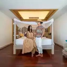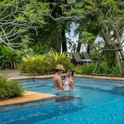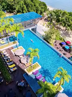 The resort also has a beachfront swimming pool with a 180-degree sea view. The pool has a jacuzzi and sunbeds for relaxing and enjoying the view. There's also a pool bar where you can order drinks to cool off.