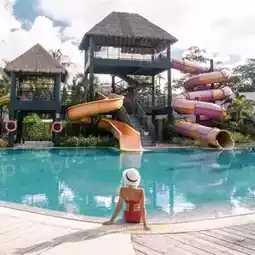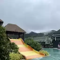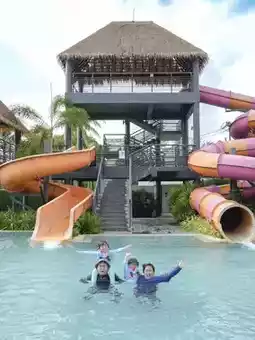 If you have young children, you definitely can't miss this place! The water slides are fantastic, and there are zones for both children and adults. It's incredibly complete. If you want to play in the sand or the sea, it's just a short walk away without crossing the street. The hotel also has a restaurant that participates in the "Half-Half" program, offering generous portions. They also offer other activities like fire baton twirling. If you're looking for family-friendly accommodations, I highly recommend this place. The staff is also incredibly helpful.