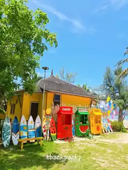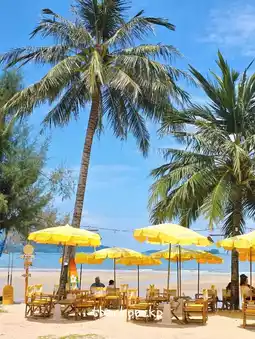 ⭐️A cute cafe with yellow umbrellas by the sea in the morning. In the evening, it becomes a beachside bar hidden within the Coconut Beach Resort. They serve main meals, snacks, and cold drinks, while soaking up the beach and ocean views. You absolutely must try their homemade ice cream, or you won't even be here! 🍦🍨