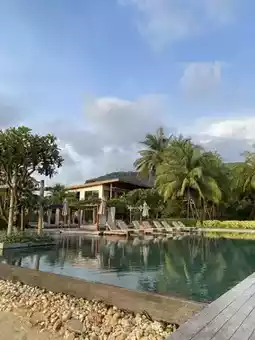 This restaurant is located at The Retraet, Kai Bae Beach, Koh Chang, Koh Chang District, Trat Province. The restaurant is right on the beach, with a balcony offering sea views and a view of the swimming pool. The atmosphere is wonderful. The restaurant is spacious, clean, and beautiful, with a natural setting that's incredibly relaxing.