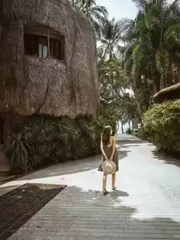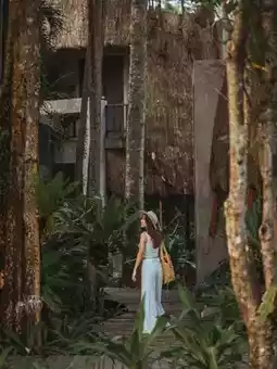 🛖 The interior of the accommodation emphasizes a variety of trees to create a cool and natural shade.
