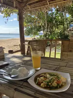 But don’t worry—you won’t go hungry or bored. Koh Jum serves up loads of beachside eats and bars, perfect for lazy afternoons or sunset cocktails with your squad. Major shout-out to Roots Hill Beach Cafe & Bar (RX88+C2H, Unnamed Road, Ko Siboya, Nuea Khlong District, Krabi 81130), the literal definition of beach bar goals. Picture this: sipping a cold drink at a rustic wooden table RIGHT by the sea, the golden setting sun doing its magic across the sparkly water, coconut trees swaying, reggae tunes floating through the salty breeze. Is this real life or just a scene from Leonardo Di Caprio’s The Beach? Trust me, you’ll vibe so hard you'll never want to leave. 🌅🍹