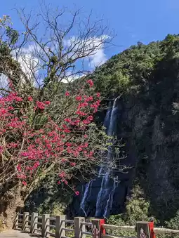 A breathtaking natural wonder! A crystal-clear waterfall flows over large rocks amidst a lush forest. 🏞️💧 There are both hot springs for relaxing and hiking trails for exploring nature. Perfect for adventurers and those seeking a peaceful retreat.