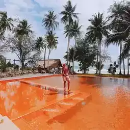 They say that if you're heartbroken, you have to go to the sea. Haha, but we think that we can go to the sea in every mood. That's right, if you think of beautiful seas in the eastern region, Trat is another province that is on the top of the list. This time, we will take you to Koh Kood Paradise Beach Resort, a beautiful resort with a private beach that stretches as far as the eye can see. There are many types of rooms to choose from. Whether you come as a sweet couple or as a family, you can choose as you wish. The highlight here is the swimming pool with orange water. It's so cool! I've never seen it anywhere before. Soak in the water while looking at the crystal clear blue sea. Getting to Koh Kood is not difficult. Park your car at Boonsiri Pier. Parking fee is 50 baht per day. Then take a boat to the island. The round trip boat fee is 1,000 baht per person. This includes the cost of transportation to and from the accommodation. Next holiday, come soak in the orange pool.