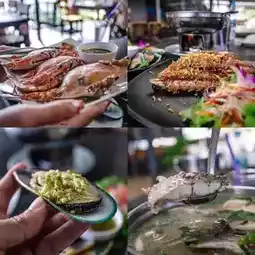 3. Go hunting for fresh seafood to eat For a big meal at Noochy sea food 1,365 baht, including dinner by the sea at the hotel, another 2 meals 1,535 baht, total = 1,450 baht per person