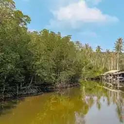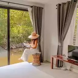 The view of the resort is a lush green mangrove forest, giving a very relaxing feeling