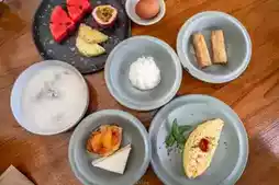 Free buffet breakfast, many choices, very good