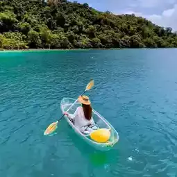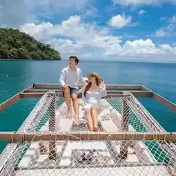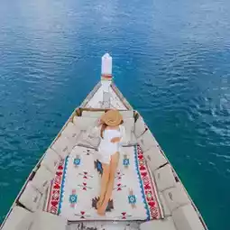 #Share a travel plan to go on a wooden boat, dive in clear water, catch squid