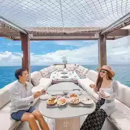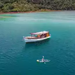 at Koh Kood Mareblu & Maresole Koh Kood Minimal style wooden boats with beautiful sea water #Koh Kood with a beautiful mountain view and very clear blue sea. There are also activities such as diving, squid fishing, visiting secret beaches, rowing clear water boats, rowing Sup Board. In addition, there are snacks, seafood, drinks to sit on the boat and listen to chill music. Starting at only 1,699 baht per person, I must say that this trip is awesome. Invite friends to prepare beautiful clothes to take pictures together.