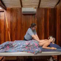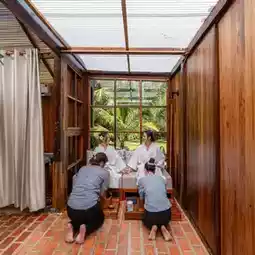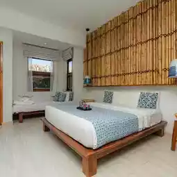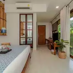 Wan and Fukk stayed in a Deluxe villa, a private house with a balcony to sit and relax in front of the house. The room is spacious, divided into separate zones, the bed is