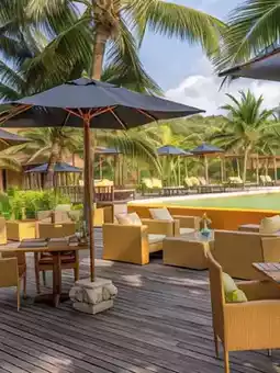 🌿 Eco-Chic Meets Balinese Elegance: The resort perfectly blends eco-sustainability with Balinese opulence. Think railway sleeper wood main streets, thatched roofs, and authentic bamboo furniture.