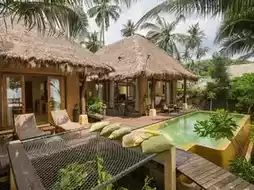 High Season Pool Villa & Spa (Koh Kood) is a luxurious private pool villa resort located in the heart of Klong Chao Beach. This resort not only boasts the most beautiful beach on Koh Kood with fine white sand and clear, clean seawater, but it is also designed and decorated harmoniously with nature. The resort offers happiness to all guests with 42 private pool villas, available in three different types, each uniquely designed and decorated based on size. Additionally, each villa comes with a lounge area and a balcony where guests can enjoy stunning sea views.
