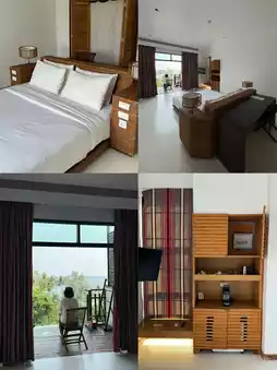 This room can accommodate 2 people. There is a bathtub with a sea view in front of the room's balcony.