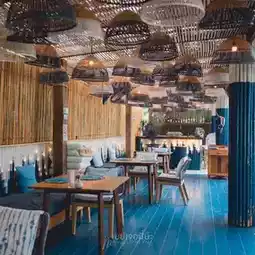The restaurant is in the seafront area next to the swimming pool. It is very comfortable to sit and chill. You can stay for a long time. There is a famous bar called 𝘽𝙡𝙪𝙚 𝘽𝙚𝙖𝙘𝙝 𝘾𝙖𝙛𝙚. No matter how many times you come here, you will never get bored. If you like it, come and visit us.