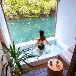 There are only 4 rooms, and the balcony opens out to a bathtub. The view of the canal is surrounded by the greenery of the mangrove forest. I really like it.