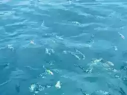 You can see beautiful fish swimming around and the bright blue seawater.