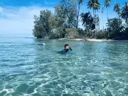 The coral reef snorkeling spot here has the clearest water.