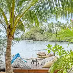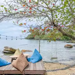 ☕💦 Gathi Cafe – A secret seaside café in Chanta Resort, Koh Kood, perfect for those who want to find a quiet corner to sit and sip coffee, take cool photos, and fully enjoy the sea atmosphere. The shop is decorated in white and blue tones to match the amazing view. There are both pavilion areas, swing areas, or you can sit by the sea to enjoy the breeze. There are also seats inside for those who want a cozy feel.
