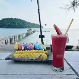 📍The Deck Bar is located at Koh Kood Resort and is open from morning until late at night. It offers a wide variety of food and drinks, including fruits, smoothies, meals, and alcoholic beverages, with prices starting at 100+.