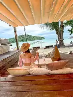 The Deck Bar Cafe Koh Kood is located within Koh Kood Resort, a popular seaside resort. The resort features a picturesque long bridge extending into the sea, a must-visit spot for anyone coming to Koh Kood to capture stunning photos. Inside, there is a pool bar with beautiful views, along with a restaurant offering a wide variety of food and drinks. 🍝🍹 Drinks start at just 100 THB. Even if you're not staying at the resort, you can still relax and enjoy the bar, which offers plenty of great photo opportunities with excellent lighting and ambiance.