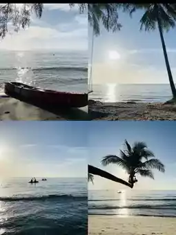 Tonight, we'll stay at Peter Pan Resort, located on the beach. The sunset in front of our accommodation is just a few steps away. Enjoy swimming, kayaking, and even a pool. Or simply stroll along the beach.