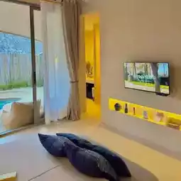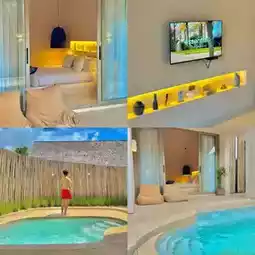 We stayed in the Canopy Pool Villa. It's spacious, beautifully decorated, and every angle looks great. It has a private pool and beautiful lighting, so we got tons of great photos. It's also right next to a private beach, perfect for a stroll or a relaxing beach bar to watch the sunset. It feels amazing! 🤍🌴