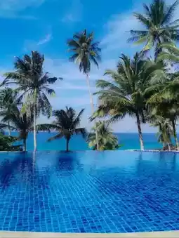 Relax in this beachfront resort with stunning sunset views from your balcony. 🌅