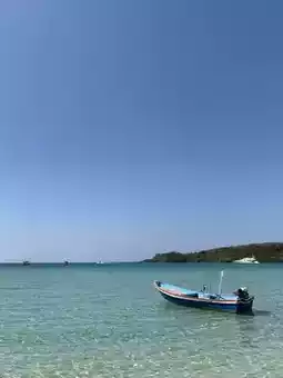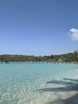 🏝️ The sea water and sand here are very beautiful. It is so beautiful that your eyes will pop out. The water is crystal clear. You can see small fish swimming around us. From a distance, the sea is a beautiful blue color beyond words.