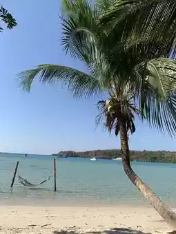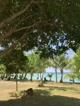 🏝️ The sand is very fine and soft on your feet. Soft and white. You can walk or lie in the sand all day long. The shady garden and coconut trees contrast with the cool breeze, making us feel drowsy. The resort also has hammocks set up at intervals for you to rest.