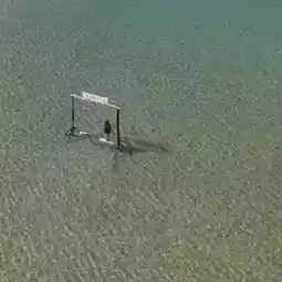 Both the bridge extending into the sea, the telephone booth, the beach bar.