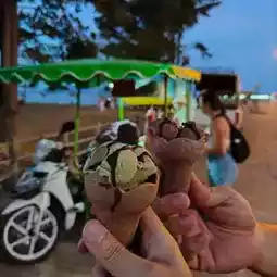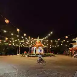 I drove a motorcycle to Lanta Town and found a leisurely old street full of Chinese style. It was late afternoon and there weren't many tourists, so I was able to take a leisurely walk. I tried the delicious ice cream and the taste was indeed delightful. The whole street was surrounded by lanterns, creating a quiet atmosphere that made me feel like I was in another world and left me with pleasant memories.