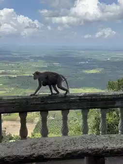 Monkeys are everywhere along the stairs. They can be aggressive, especially if they see food or feel threatened, so donāt feed or try to interact with them. Even direct eye contact can provoke them.